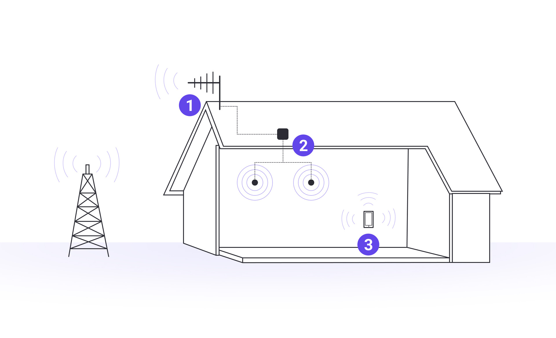 Наружная антенна усиливает прием и передачу сигнала на близлежащие вышки сотовой связи.